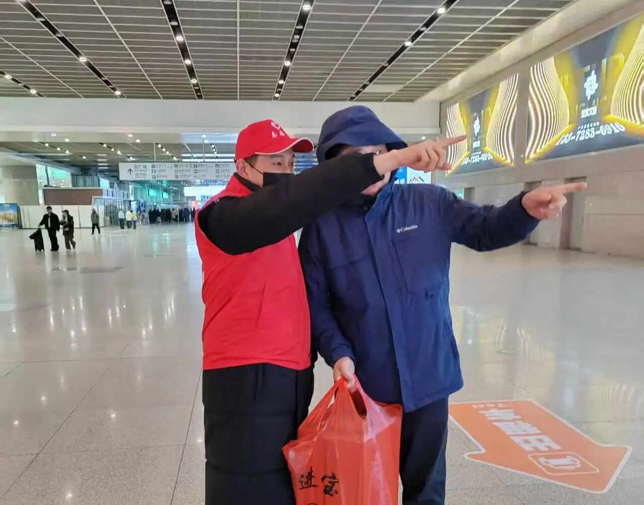 1月1日上午9點(diǎn),首批志愿者早早抵達(dá)服務(wù)點(diǎn)位。他們身著統(tǒng)一標(biāo)識的紅色馬甲,在沈陽站西廣場地下出站口、出租車??空镜汝P(guān)鍵位置設(shè)立服務(wù)崗?!澳茫枰獛兔??”“去中街可以乘坐地鐵1號線”……志愿者們耐心細(xì)致地回答著旅客的各種咨詢,為初到沈陽的游客提供清晰的指引。